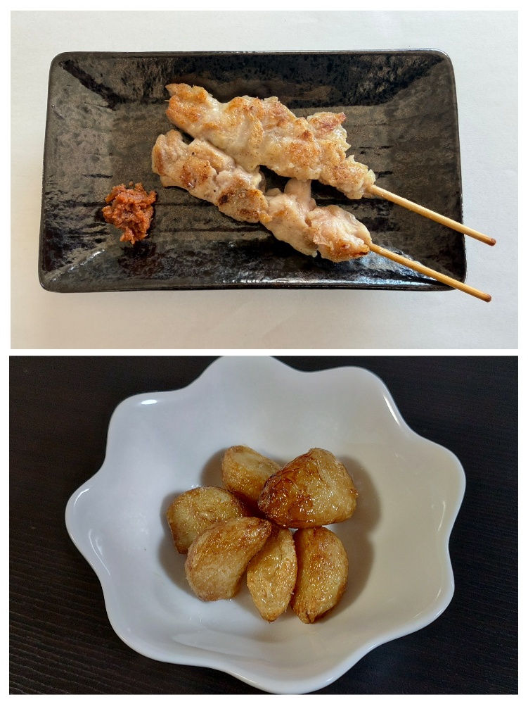 焼き鳥 1皿 ¥300 (1本 ¥150) 揚げにんにく ¥200